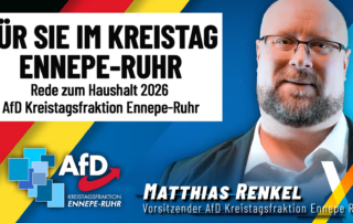 Am vergangenen Donnerstag, den 12. Februar 2026, fand die konstituierende Sitzung des neu gebildeten Ausschusses für Kreisentwicklung, Wirtschaft und digitale Infrastruktur im Kreishaus in Schwelm statt. Unter der Leitung des neuen AfD-Ausschussvorsitzenden Sven Layh trat [...]